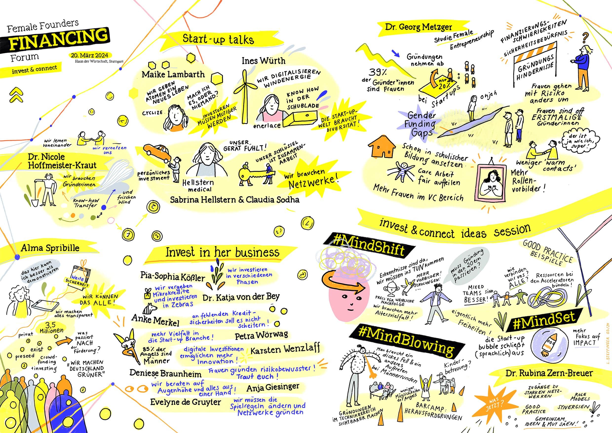 - Konzeptionierung und Umsetzung des Female Founders Financing Forums mit 200 Teilnehmenden als landesweites, zentrales Kick-off – mit Keynotes, Start-Up Talks und Idea Sessions zu unterschiedlichen Aspekten von Female Finance und Female Investing
